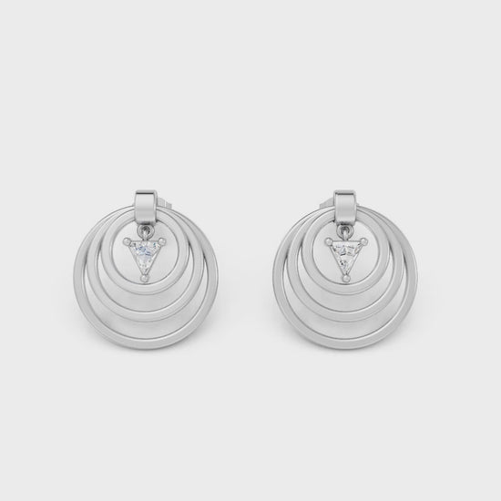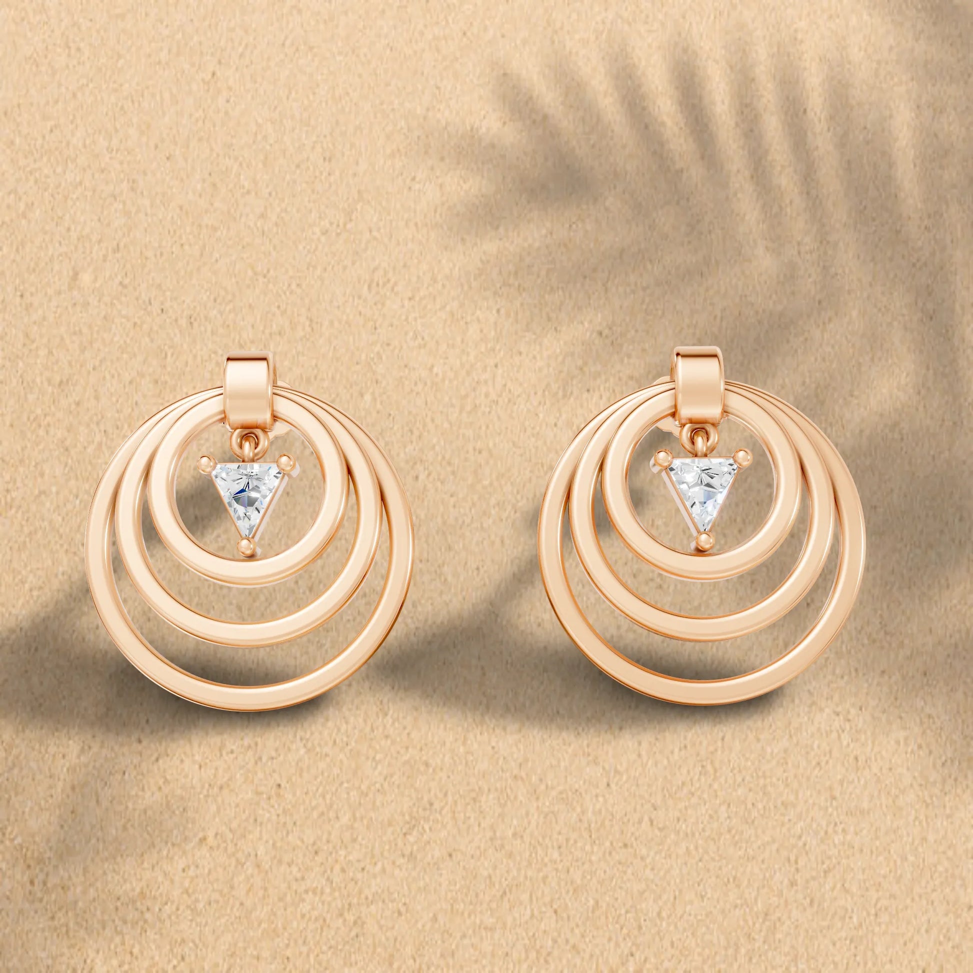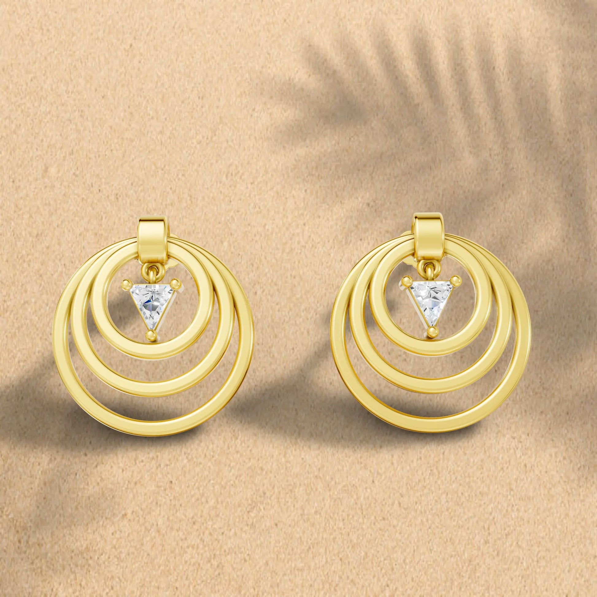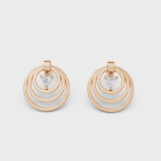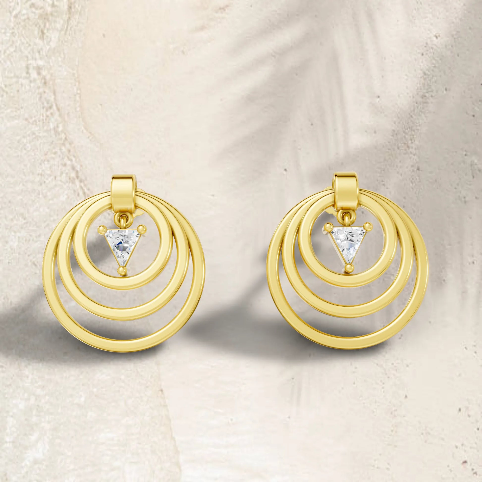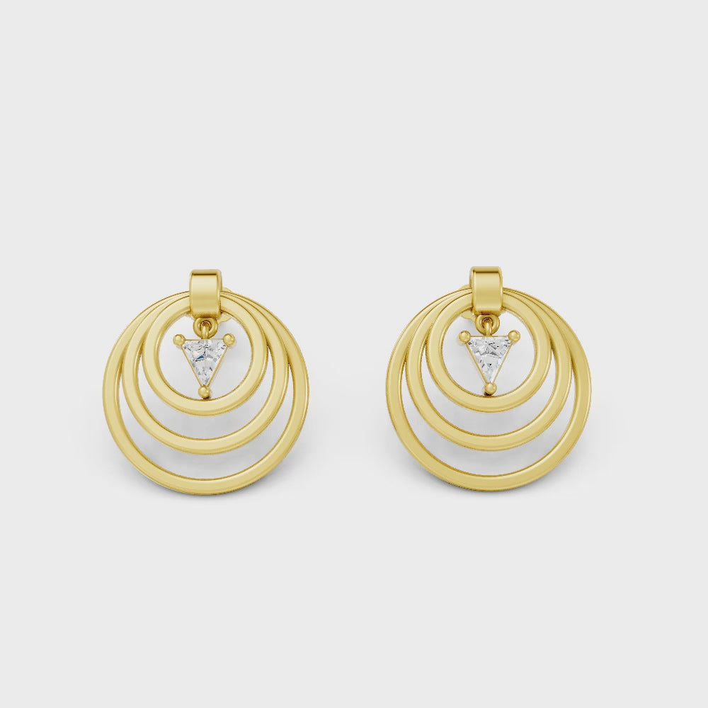 Crafted in solid 14k gold, this drop earring showcases a bold triangle cut lab-grown diamond suspended from layered hoops. A modern geometric design that adds striking brilliance and stylish movement to any jewelry collection.