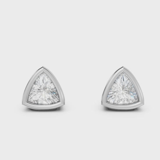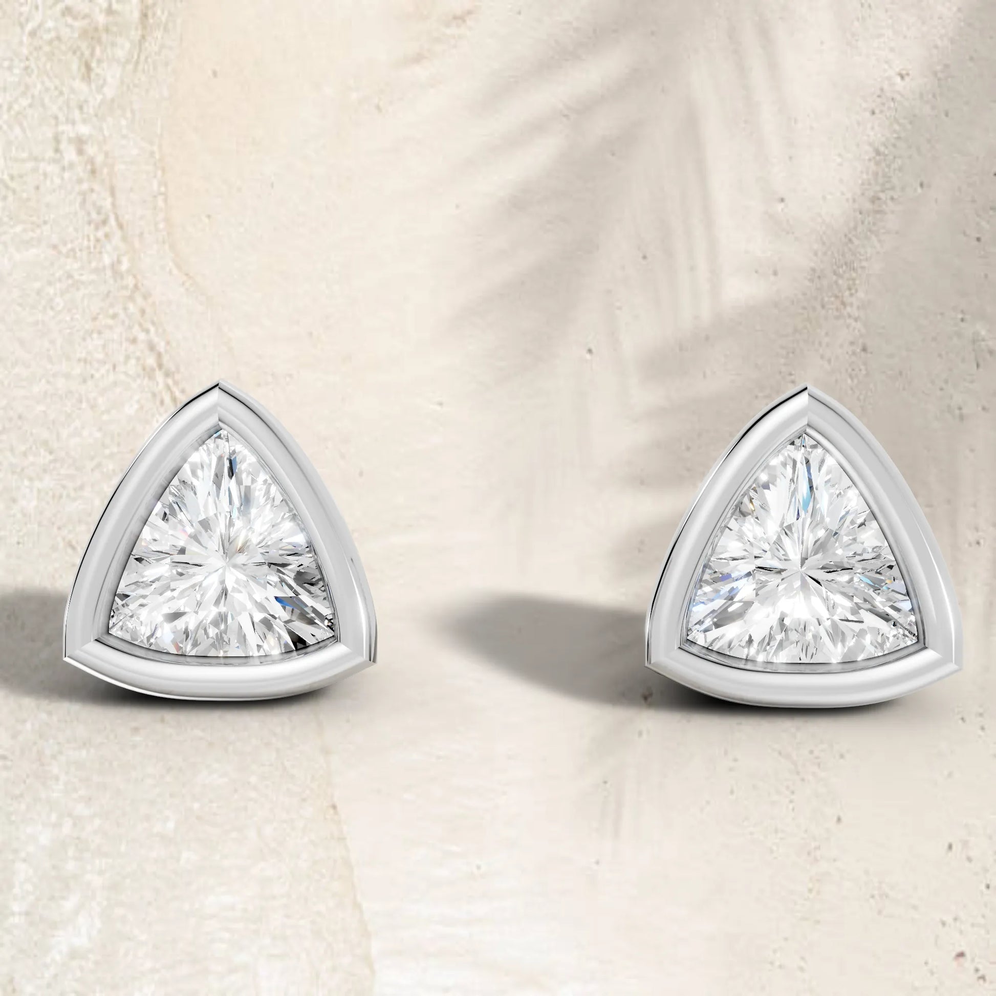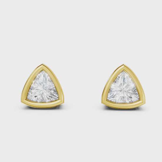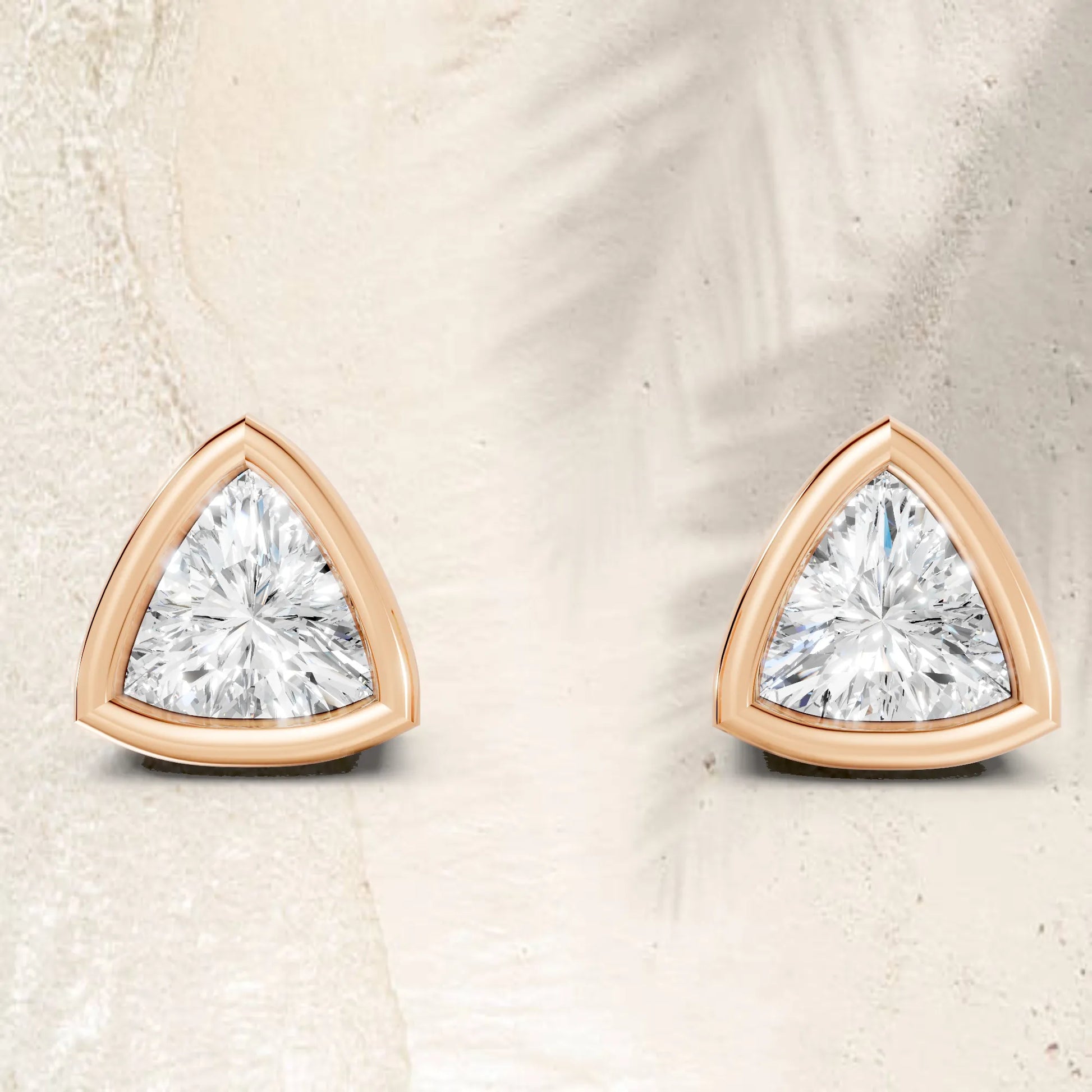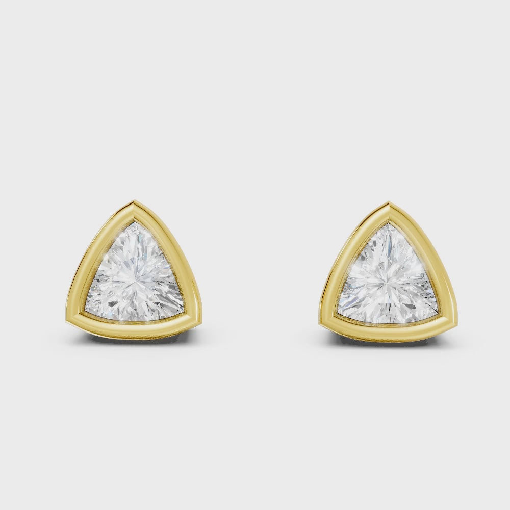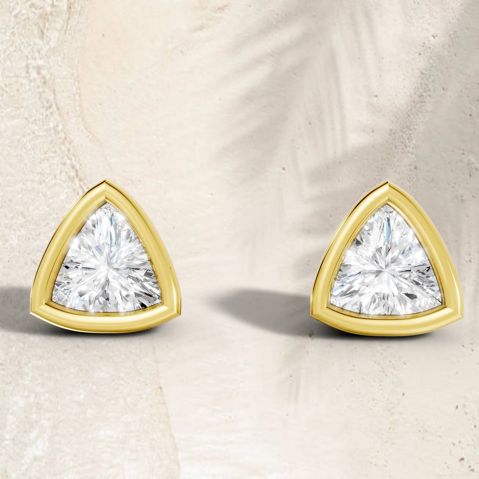 Crafted in solid 14k gold, this trillion cut lab-grown diamond stud features a sleek bezel setting that enhances its geometric sparkle. A modern design that adds bold brilliance to any look.