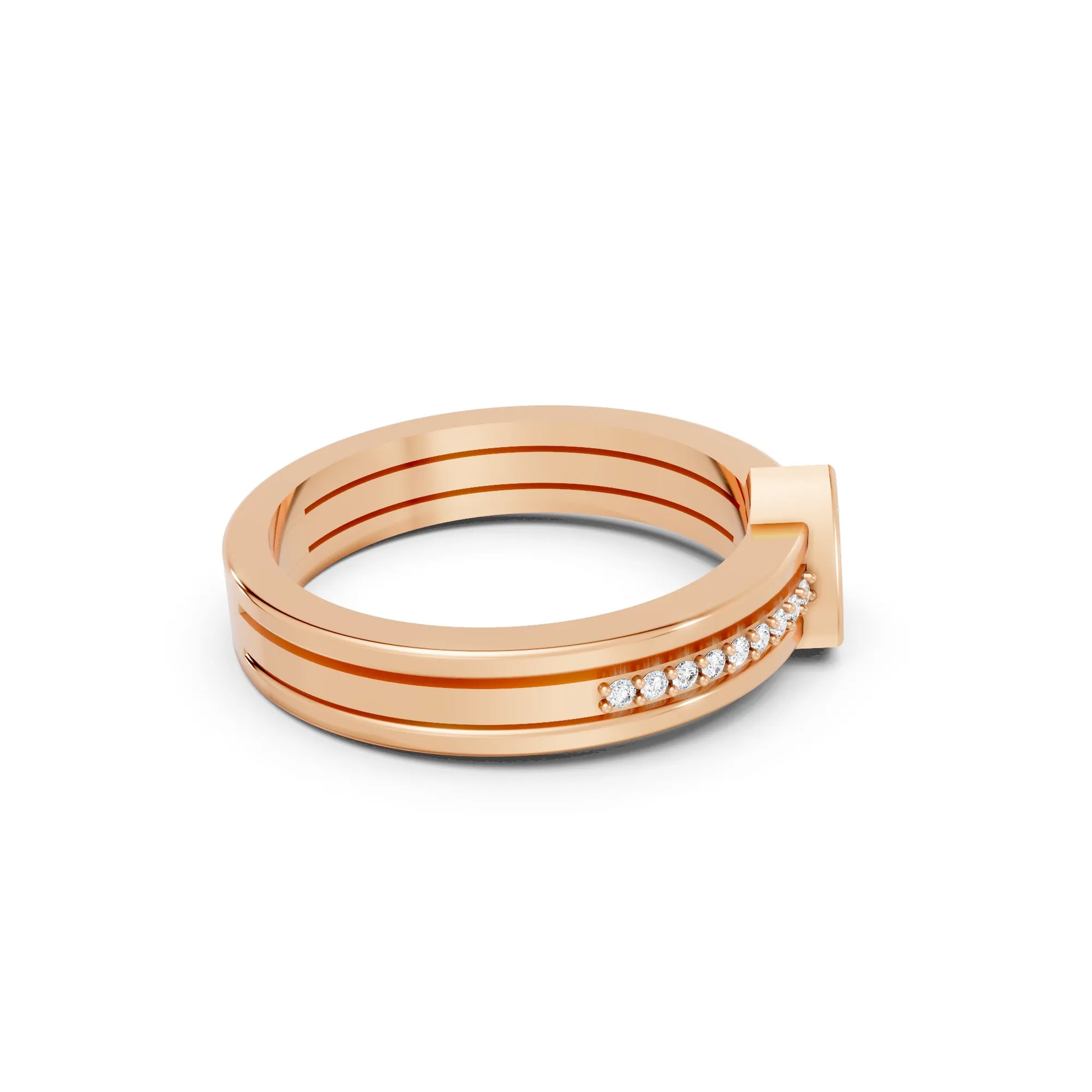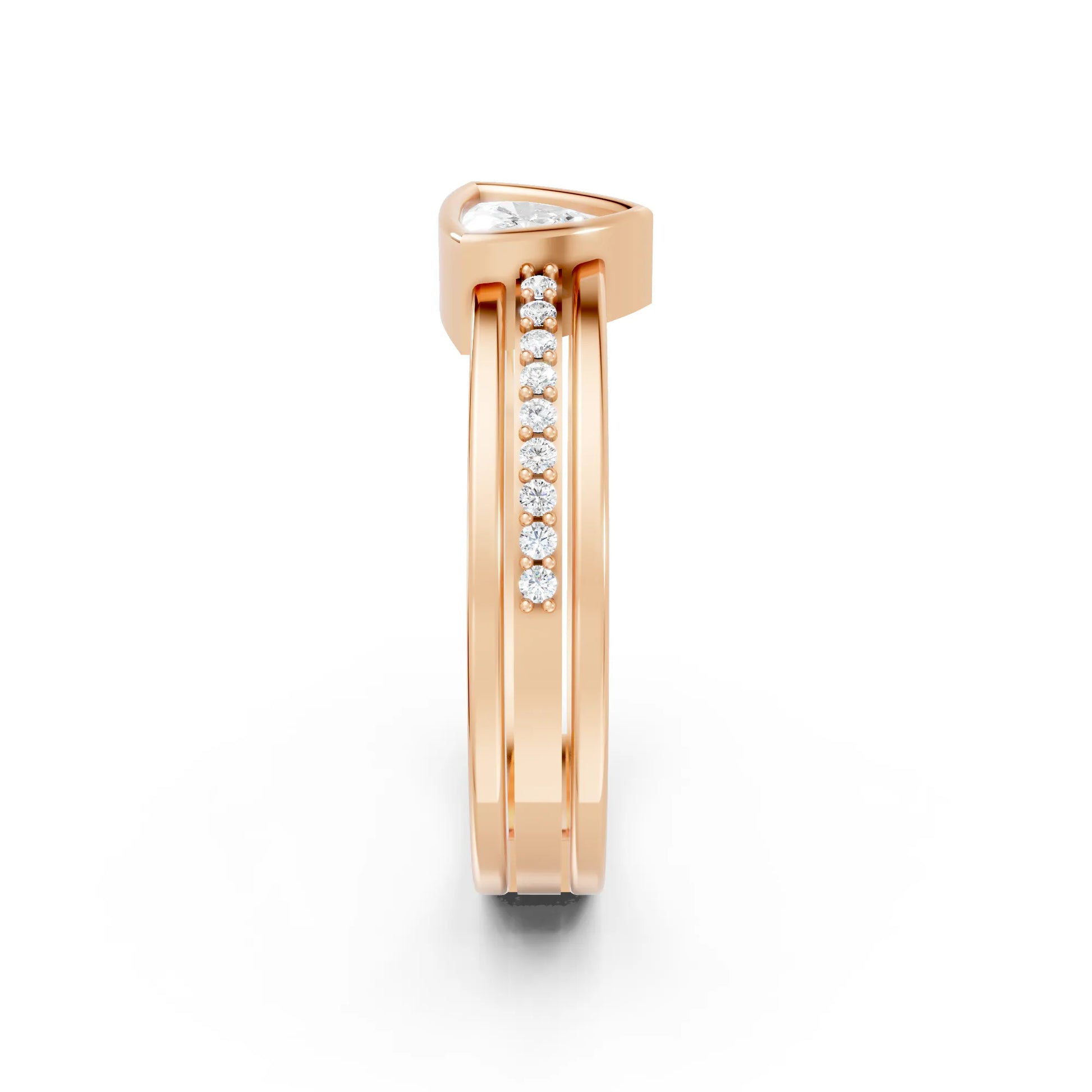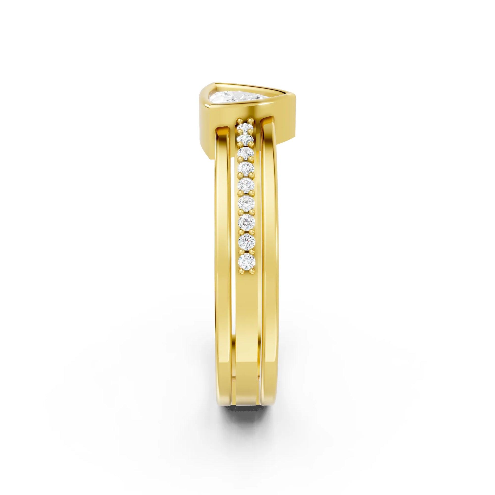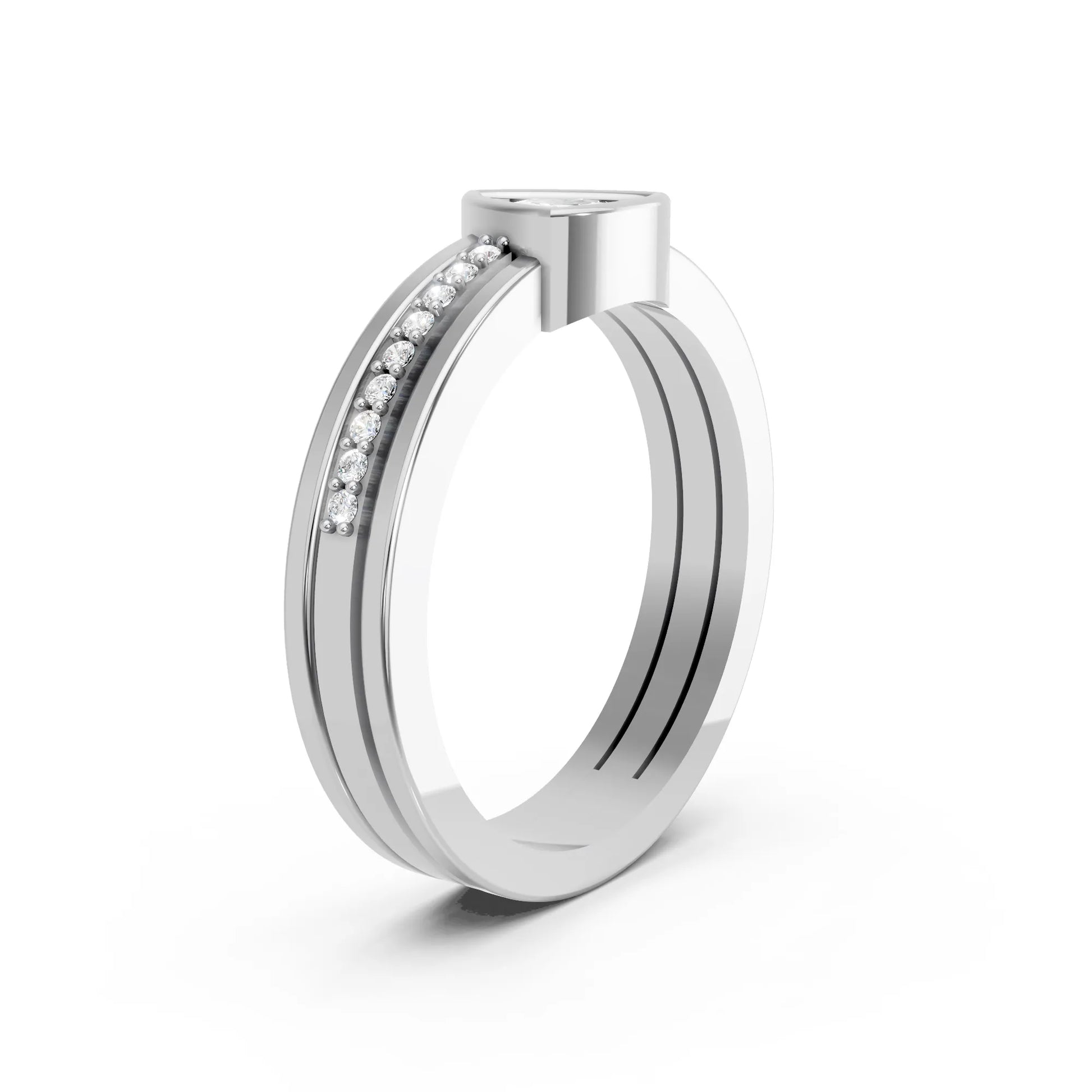 This engagement ring, crafted in solid 14k gold, features a bold trillion cut lab-grown diamond in a sleek bezel setting. Sparkling side accents and a striking double band design enhance its brilliance, symbolizing love and unity.