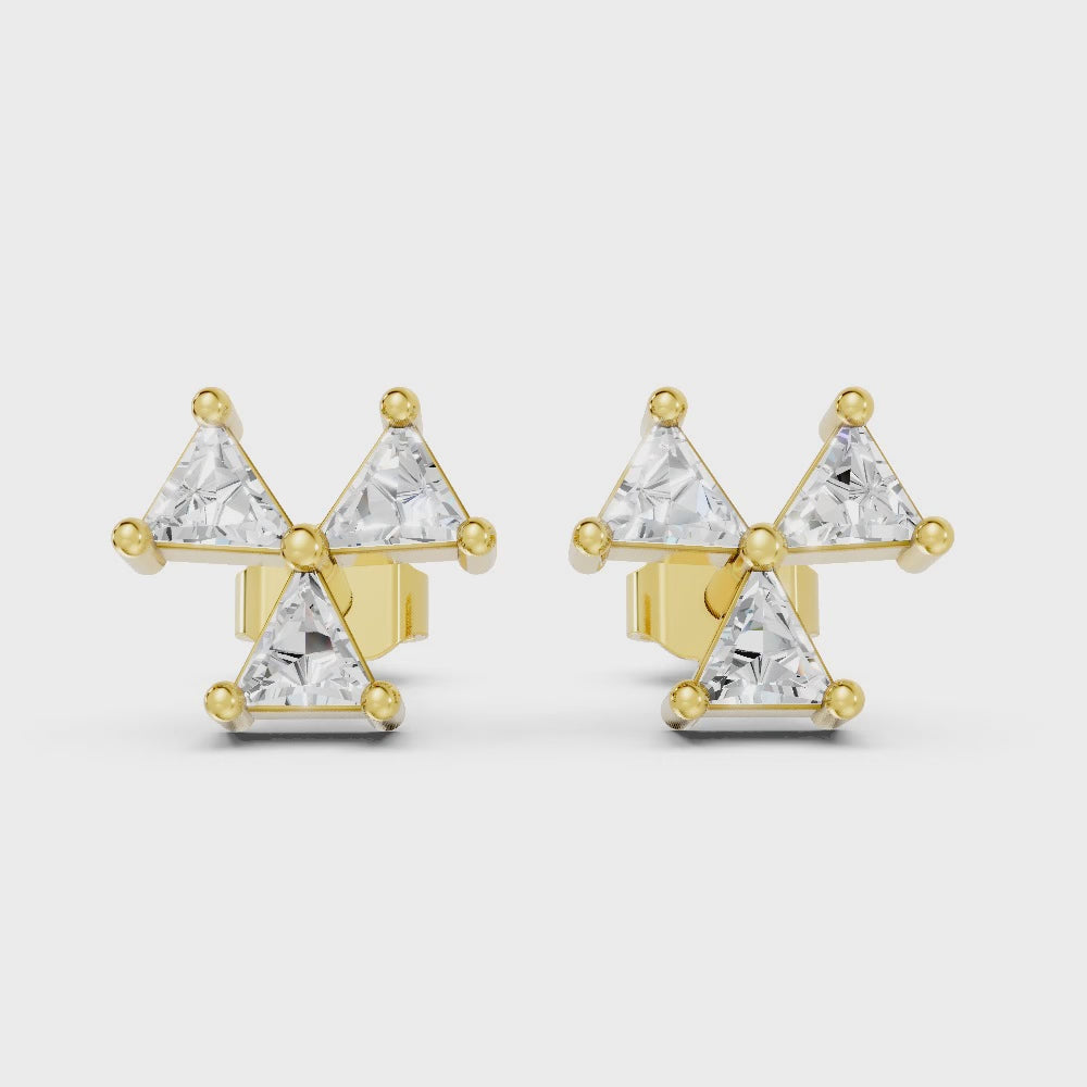 Crafted in solid 14k gold, this stud earring features three triangle cut lab-grown diamonds in a striking trinity design. A bold yet refined piece that adds geometric brilliance and modern charm to any look.
