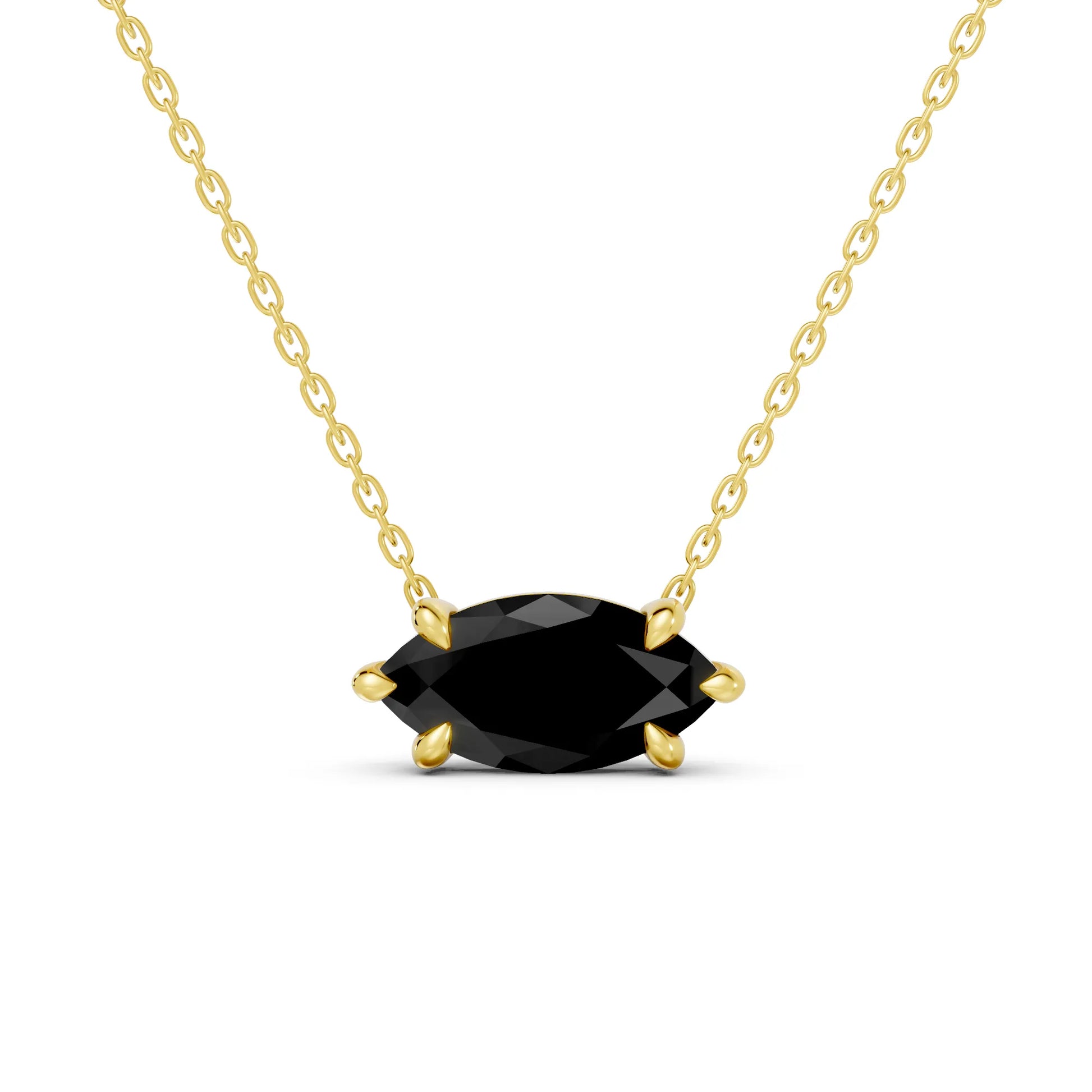 18K Gold Marquise Cut Black Diamond East-West Solitaire Necklace